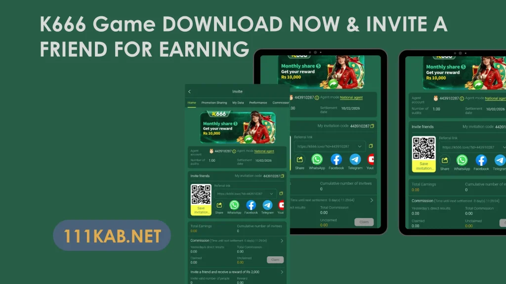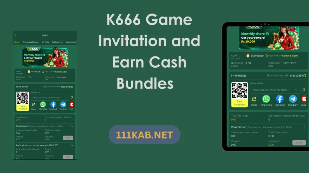 The K111 Game affiliate program allows users to invite friends and earn rewards.